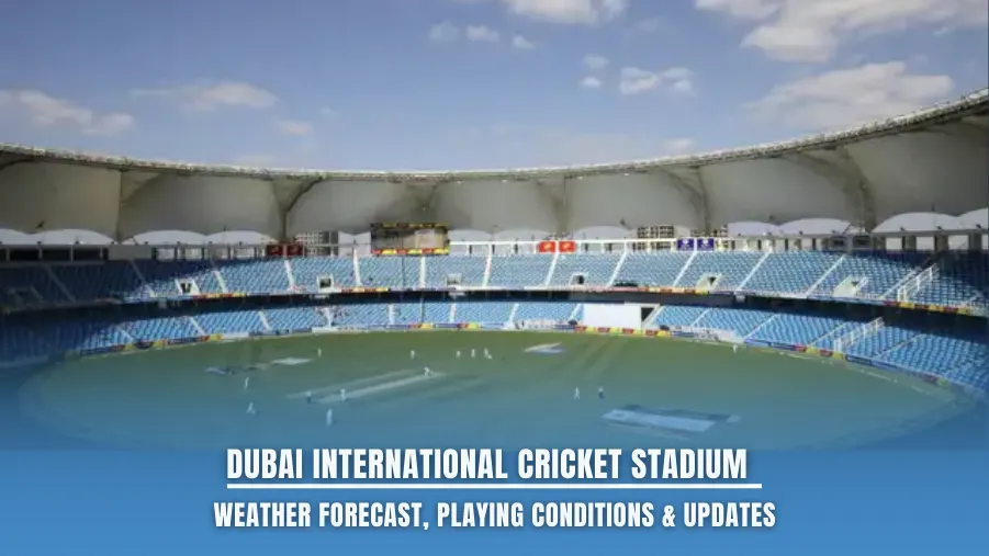 Get the latest Dubai International Stadium pitch report, including batting or bowling insights, average innings score, highest score records, and the stadium's weather updates for today’s match.