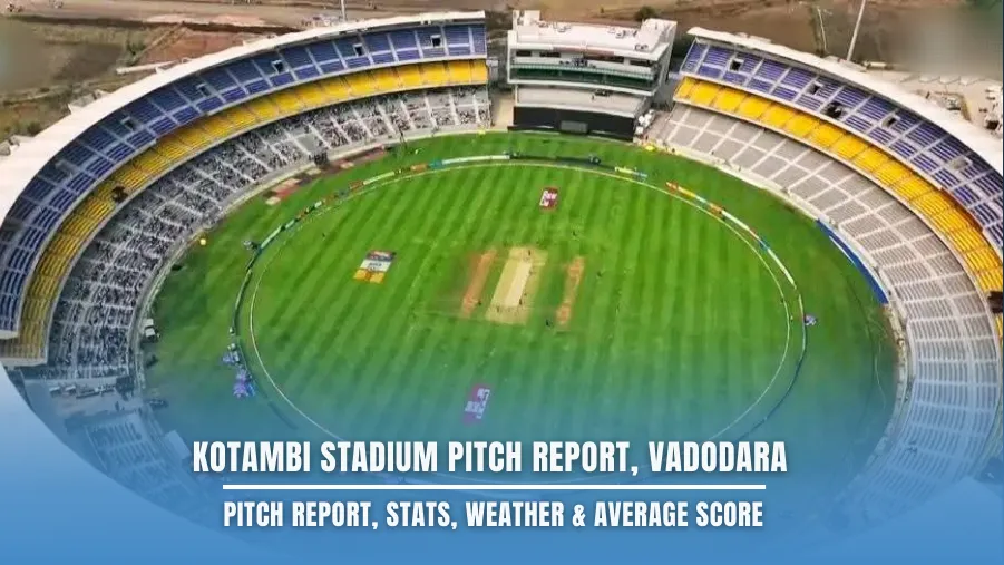 In this article, you will get the complete Kotambi Stadium Vadodara Pitch Report based on recent games. This pitch is usually very flat and hard, which is great news for batters, but sometimes it gets slow. If you are searching for the Kotambi Stadium Vadodara Pitch Report Today to make your Dream11 or fantasy team, then this information is very important for you, as the dew factor changes the game in the evening.