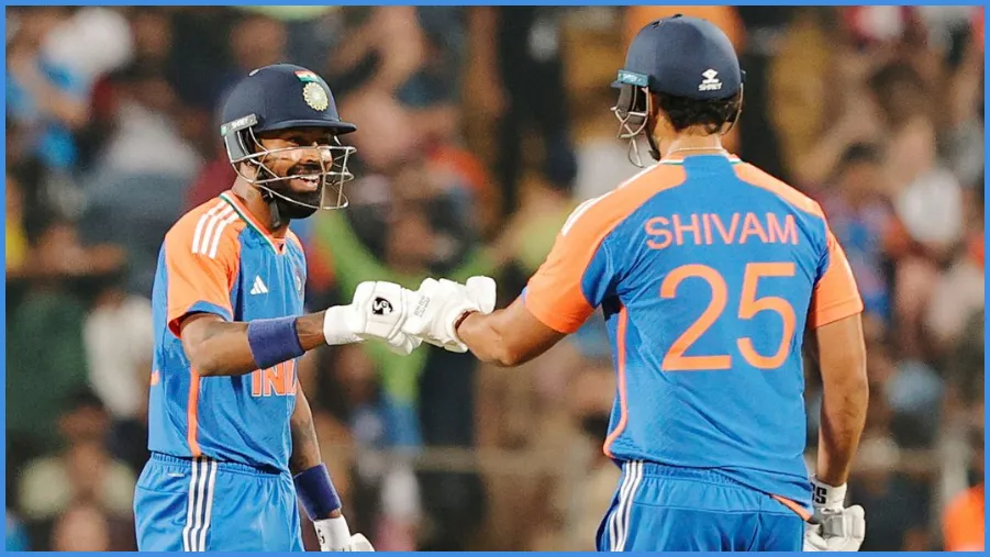 On the third delivery of the 18th over, there was a mix-up between India's two star all-rounders, Shivam Dube and Hardik Pandya, due to which the former lost his wicket on 43 runs. Pandya played a shot towards the mid-wicket and called Dube for a single, but later sent his partner back.