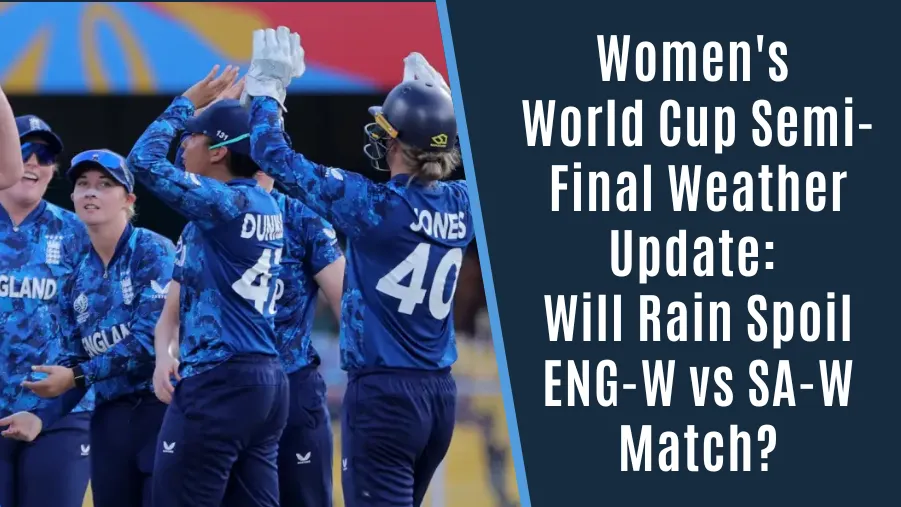 The Women’s World Cup semifinal weather update for the ENG-W vs SA-W clash in Guwahati predicts cloudy skies and a 30% chance of rain. With temperatures near 28°C and 65% humidity, conditions may be sticky. Fans hope the ENG-W vs SA-W rain prediction won’t affect the big semifinal.