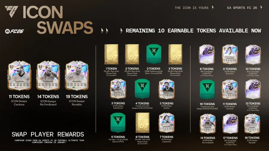 The second half of ICON Swaps launched on February 20 and delivers the final 10 earnable tokens. Objectives for this drop stay available for three weeks, while the exchange Squad Building Challenges remain active for an extra week after that.