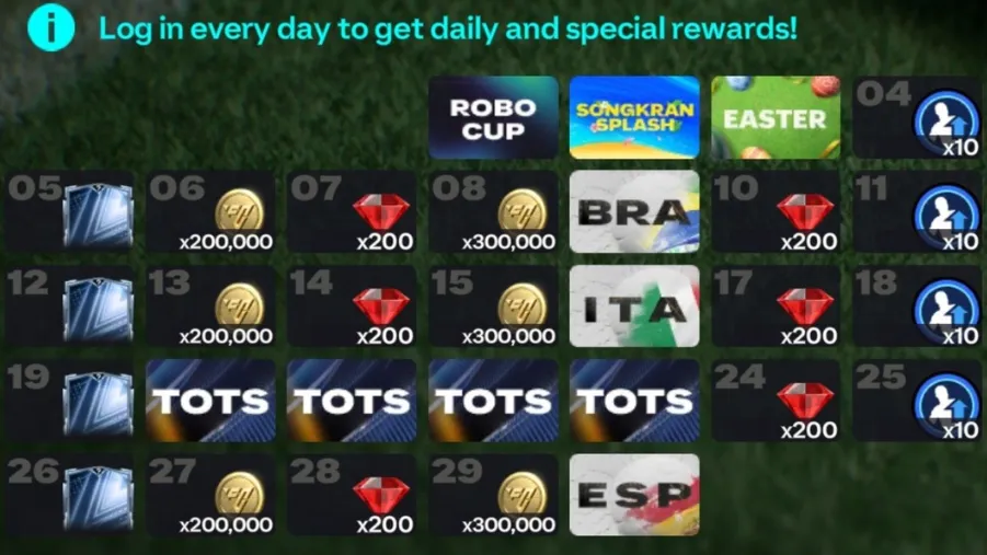 Right before the calendar hits April, the developers at EA Sports revealed next month's roadmap. As mentioned, the daily login reward calendar highlights exclusive events such as Songkran Splash, Easter Egg, and a bunch of A Nation's Story slides. And when there are events, there will be rewards. While some will be free, a few will require a hectic grind to unlock. More or less, these rewards include EA FC Coins, High-rated cards, shards, and many more. On that note, let's explain every event one by one: