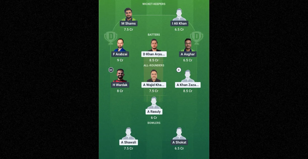 - A Zazai and F Arabzai are suitable captain choices, as both players are experienced players for their respective teams and are also highly rated in Dream11 points. This certainly makes them players to watch in the upcoming match.