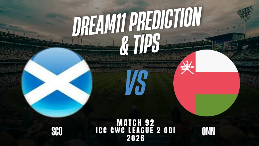 Scotland will face Oman in the 92nd match of the ICC CWC League 2 ODI 2023-27 at Wanderers Cricket Ground, Windhoek, on 2 April 2026. Scotland has shown excellent form in this tournament, having won 13 matches and currently hold the second position in the points table with 31 points. They won their last match by 55 runs against Namibia and successfully defended a target of 164 runs.