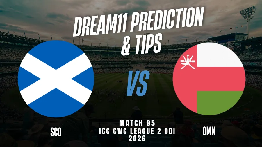 Scotland will take on Oman in Match 95 of the ICC CWC League 2 ODI 2023-27 at Wanderers Cricket Ground, Windhoek, on 8 April 2026. Scotland has had a strong tournament so far, winning 13 matches and currently holding second position in the points table with 32 points. Their last three matches ended without a result.