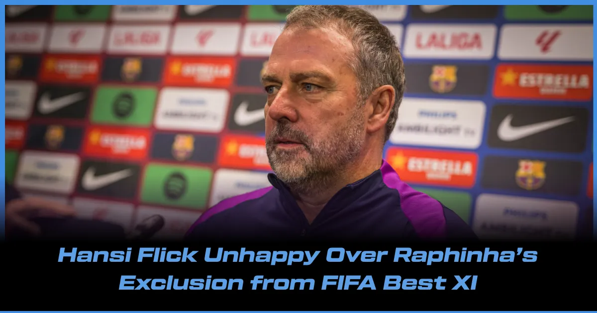 The FIFA best XI has been voted by national team coaches, captains, journalists, and fans across continents, who seemed it fit not to include the Barcelona winger Raphinha. Ousmane Dembele and Lamine Yamal found a place in the forward line, while the midfield was occupied by Jude Bellingham and Cole Palmer alongside Pedri and Vitinha. Let's see what the words were from Hansi Flick on FIFA Best XI.
