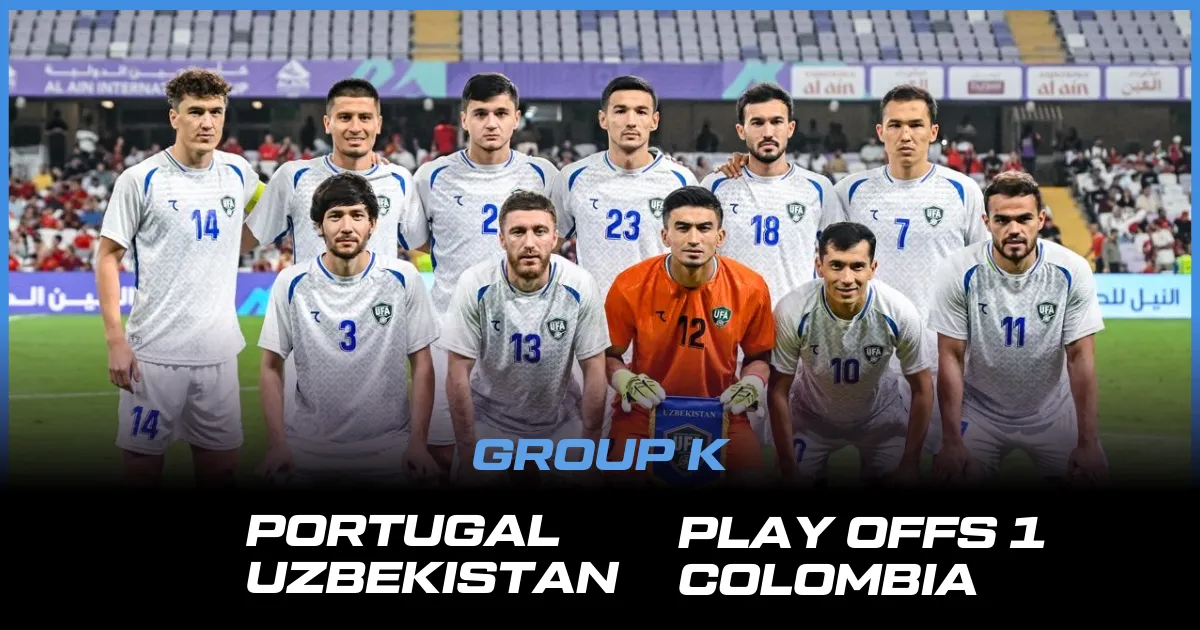 Let's have a look at the Uzbekistan FIFA World Cup Matches 2026 List. They start their group stage campaign against the 2024 Copa America runner-up, Colombia, followed by a matchup against the 2025 UEFA Nations League winners Portugal. Their last match in the group stages (Group K) will be against the winner of Playoff 1, which is yet to be determined.