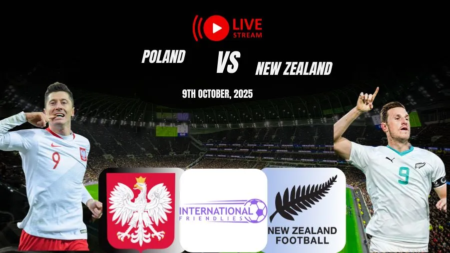 - Poland National Football Team are all set to lock horns with the New Zealand National Football Team in an international friendly clash on October 9, 2025, at 6:45 pm GMT. The match will take place at the Silesian Stadium, which is the home ground of the Polish Football Team.