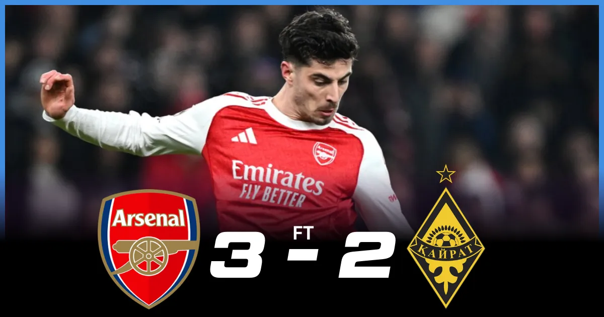 Arsenal defeated Kairat 3-2 in a thrilling Champions League match.