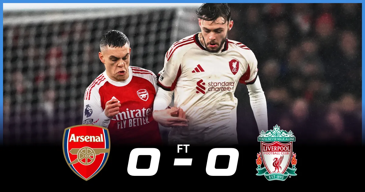 - Tempers flared near full-time after a foul on Bradley, with Ibrahim Konaté and Gabriel Martinelli both shown yellow cards as the match ended 0–0.