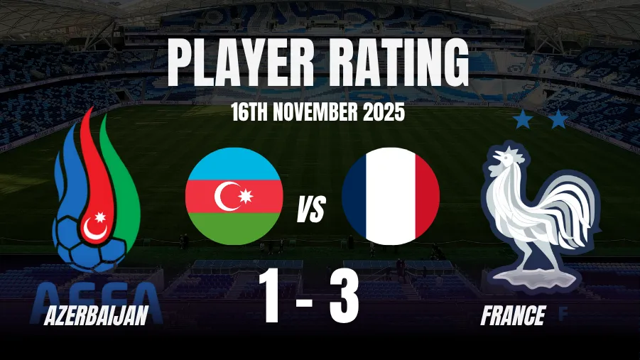 France ovecame Azerbaijan in dominant fashion, despite conceding an early goal in the World Cup qualifier. Mateta and Akiiouche scored for France, while the other one came from an own goal. Here are Sportsdunia’s Azerbaijan vs France Player Ratings from the FIFA World Cup qualifier: