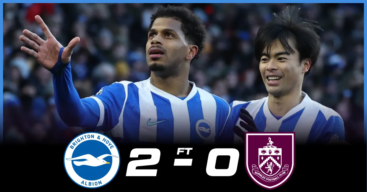 Brighton & Hove Albion delivered a commanding performance against relegation battlers Burnley at The American Express Community Stadium. They secured a comfortable 2-0 victory over a struggling Burnley side, who are 19th in the Premier League table currently.