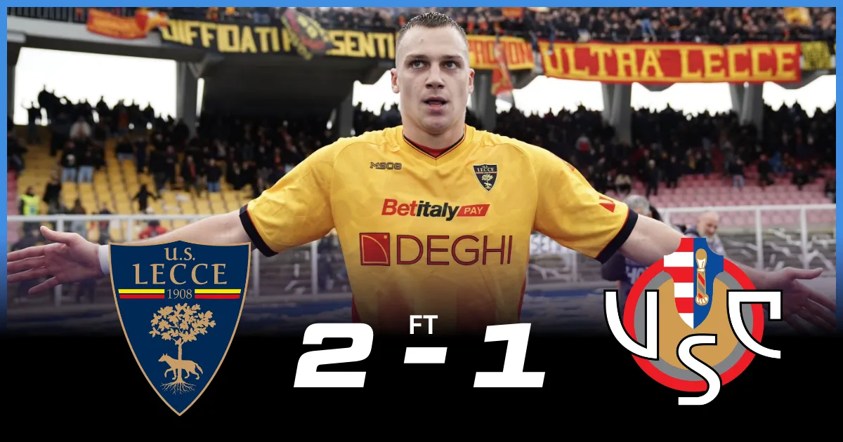 The Lecce vs Cremonese match ended in a thrilling 2-1 win for Lecce.