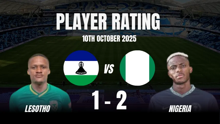 Lesotho 1-2 Nigeria Player Ratings: Adams Rated 8.5/10 as Super Eagles Scrape Past Lesotho in a 2-1 Victory