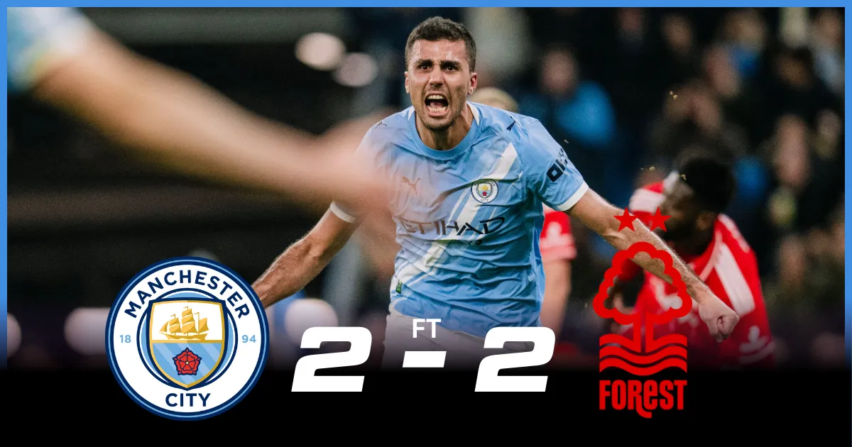 The match between Manchester City and Nottingham Forest ended in a thrilling 2-2 draw.