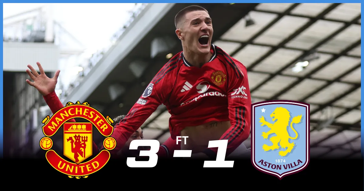 - Manchester United claimed a thoroughly convincing 3-1 Premier League victory over Aston Villa at Old Trafford, with all three goals arriving in a dominant second-half display.