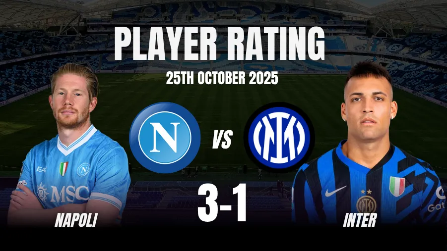 Just when the visitors looked like they might turn the tide, Frank Anguissa produced the moment of the match: a powerful solo surge past multiple defenders and a calm finish restored Napoli’s two-goal cushion. From there, the home side defended with grit while Inter’s push faded. This win does more than deliver three points. Napoli regain belief, reclaim momentum, and send a clear warning that their title defense is alive and kicking. Here are the Napoli vs Inter Player ratings.