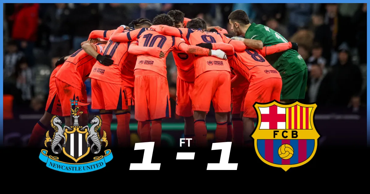 Newcastle and Barcelona created chances but could not find the breakthrough. Goalkeepers at both ends made important saves, while one effort struck the woodwork, keeping the game level. The Champions League match appeared to swing in Newcastle’s favor in the 86th minute when Harvey Barnes scored to give the home side a late lead, sending the crowd into celebration and sparking hopes of a famous European victory.