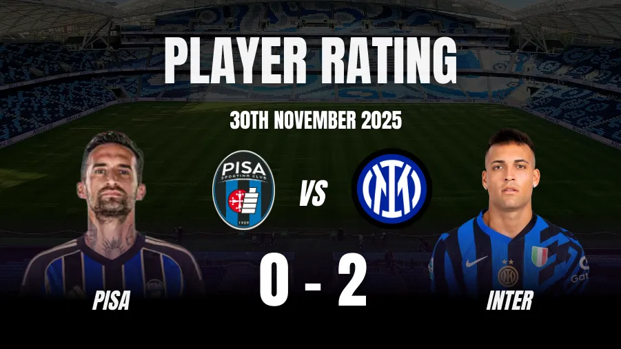 He then sealed all three points with a second goal late in the game, capitalizing on a corner to leave the home side with no way back. What stood out to us was Inter's patience and eventual clinical execution. While Pisa will be disappointed with the result, they can take heart from a performance that frustrated the giants for over an hour. Here are the Pisa vs Inter player ratings.