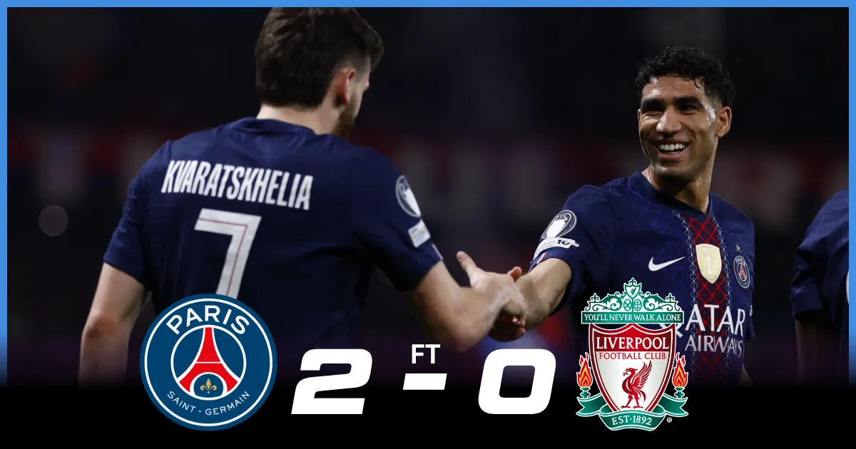 - PSG claimed a commanding 2-0 first-leg advantage over Liverpool at the Parc des Princes, with Doue's deflected opener and Kvaratskhelia's stunning solo goal giving the French champions full control of this Champions League quarter-final tie.