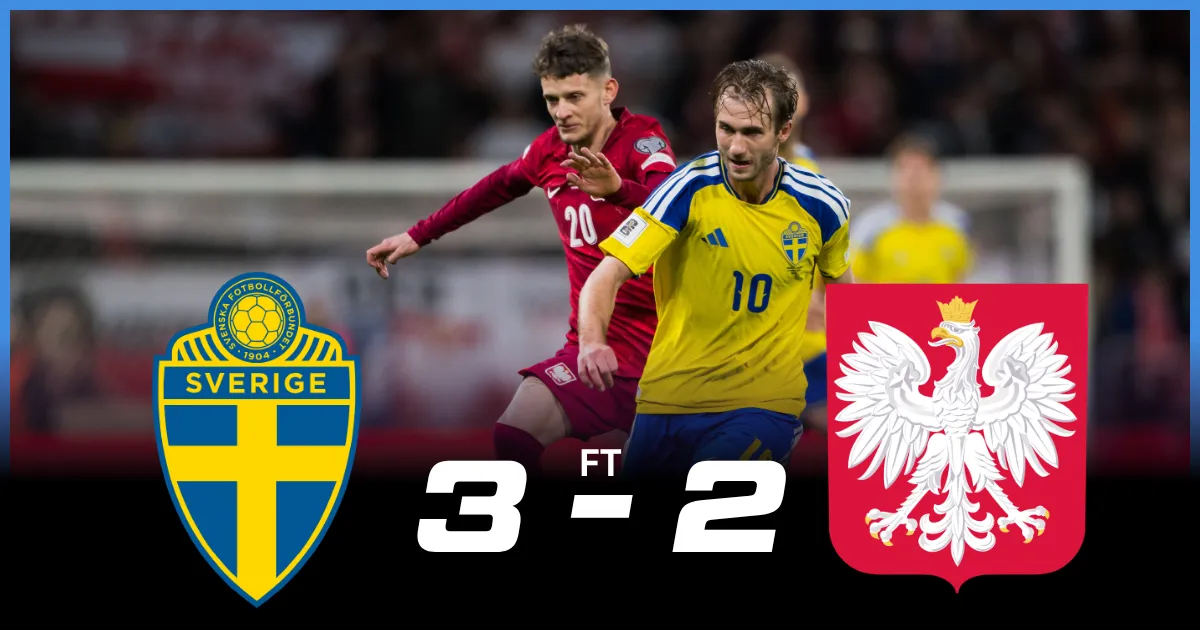 Sweden secured a dramatic 3-2 victory over Poland at the Strawberry Arena in a thrilling World Cup Qualification Europe play-off final. It was an end-to-end contest filled with intensity, momentum swings, and moments of individual brilliance that kept fans on the edge of their seats.