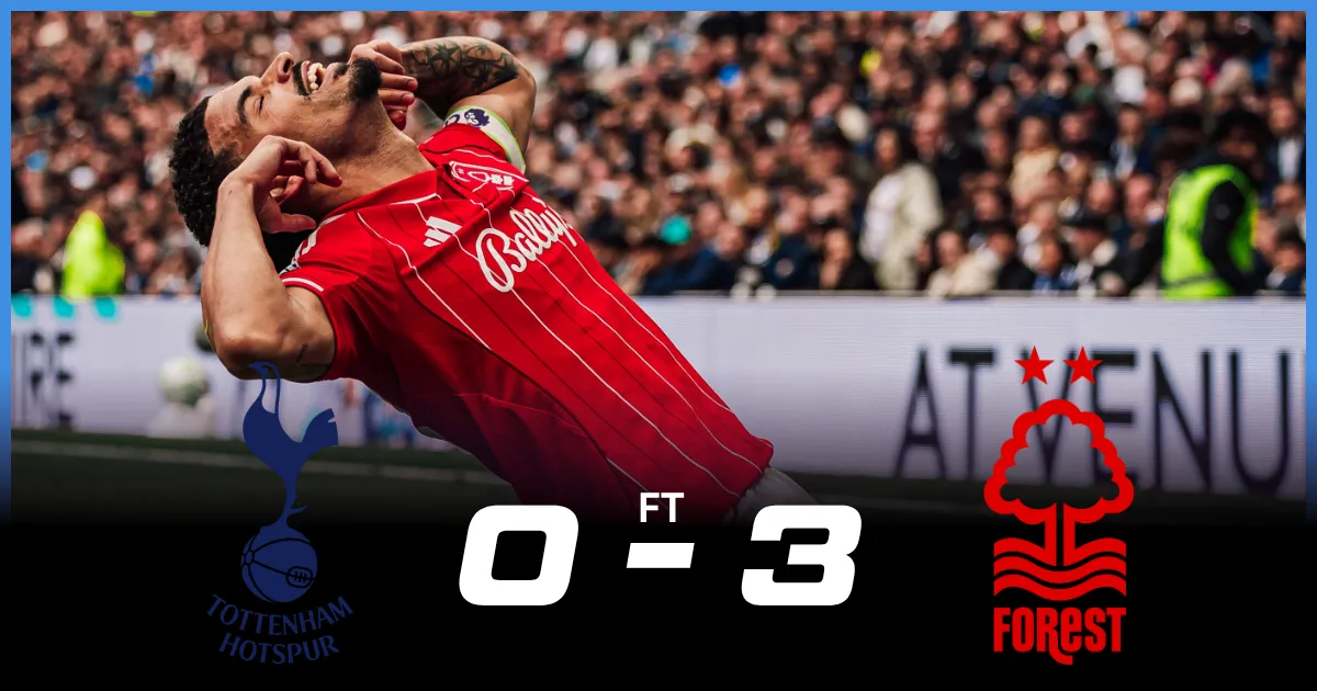 Nottingham Forest secured a dominant 3-0 victory over Tottenham Hotspur in this Premier League match.