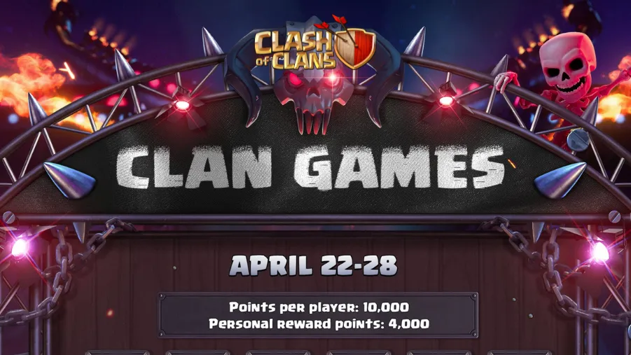 - The Clan Games will be starting from April 22nd, running till 28th of this month