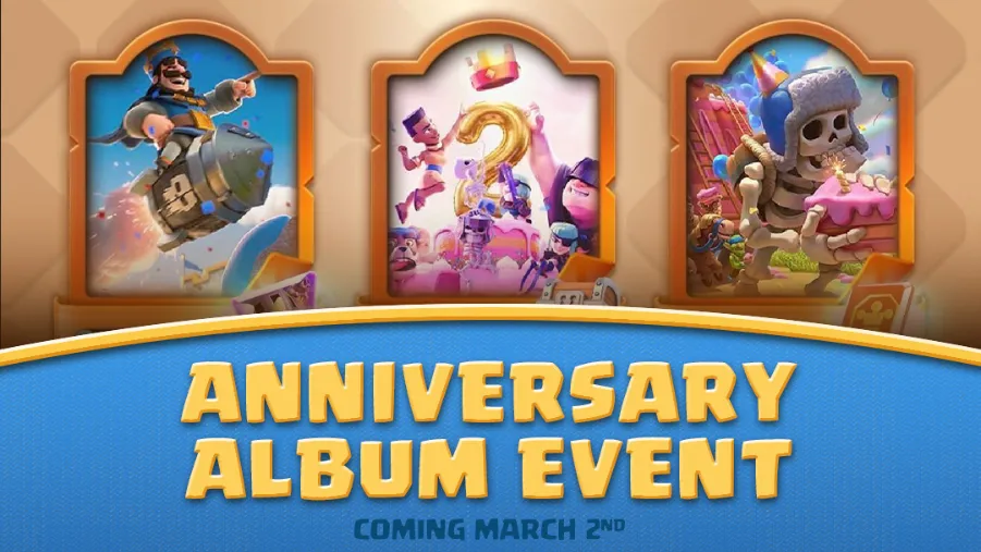 A new Clash Royale Album Anniversary Event will start on March 2, 2026. During this event, you can play normal 1v1 Trophy Road matches, Clan Battles, Challenges, and Merge Tactics to earn Clash Royale Snippets. These snippets are small portions of larger images. You must collect all nine parts of these images to gain rewards: Evolution Shards, 5-star Lucky Chests, and more. There will be nine images to complete throughout this period.