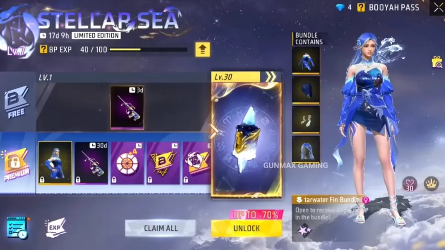 Level 1 (Premium): You will get a Female Bundle that is going to be a skin based on the aquatic theme with a special running effect.