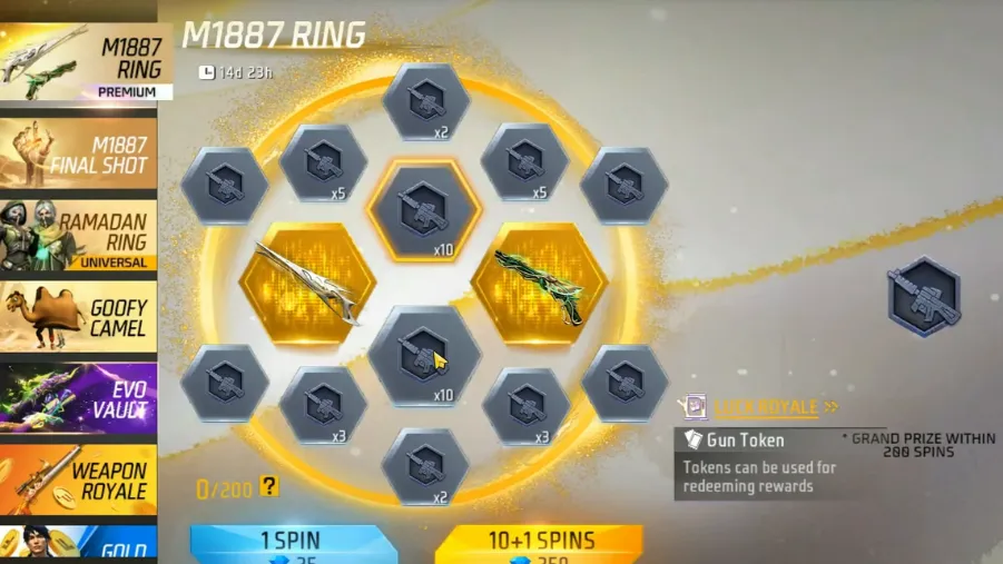 Players can spin in the event using diamonds or Universal Ring Vouchers to earn tokens, which can be exchanged for rewards including the M1887 – Sandstorm Shimmer skin.