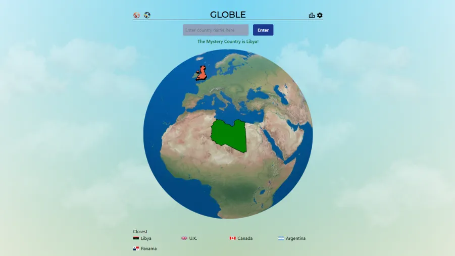 Globle is a daily web-based quiz that tests your geographical knowledge by letting you guess a new mystery nation every day.