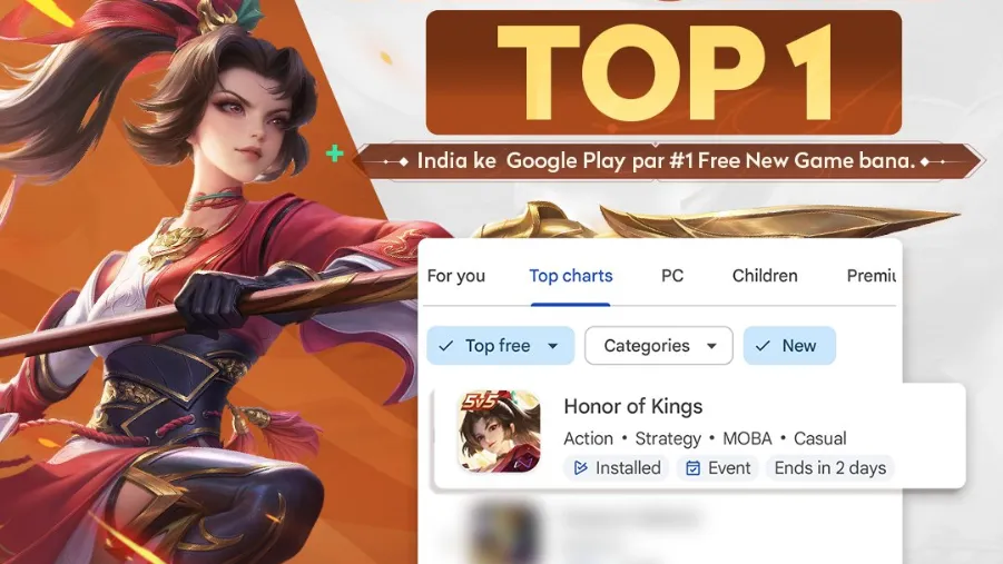 Honor of Kings Dominates Google Play Store India Ranking After Release