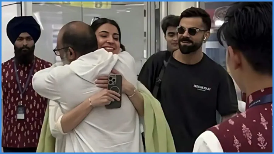 A heartwarming video from their visit to Delhi airport has taken the internet by storm, in which Anushka Sharma touches feet of a saint. The video, which has been circulating widely on social media platforms, captures the couple in a grounded moment. Despite their global stardom, they are seen sitting on the floor like ordinary devotees at an ashram in Vrindavan.